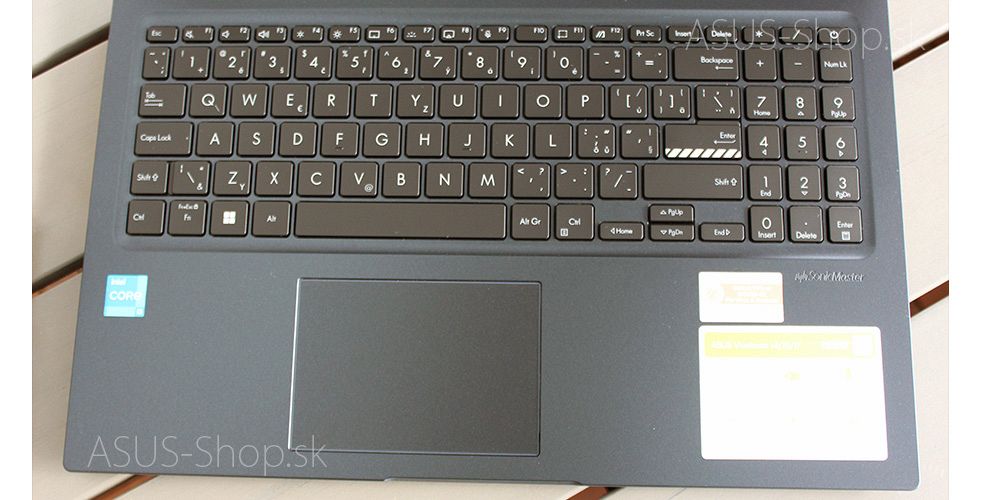 Pracovná plocha zahŕňa klávesnicu, ktorá je striebornej farby s LED podsvietením pre strieborné modely alebo čierna klávesnica pre modré modely. Pozor, niektoré verzie ako X1504ZA-BQ092W nemajú podsvietenú klávesnicu, preto zvážte, či sa bez neho zaobídete, cenový rozdiel je zanedbateľný. Klávesnica je pohodlná, s dlhým zdvihom 1,4 milimetra, ergonomicky tvarovanými klávesmi a príjemnou zvukovou odozvou. Nechýba numerická zóna a graficky zvýraznený enter. Pred klávesnicou je osadený touchpad s klzkým povrchom hranatého tvaru.
